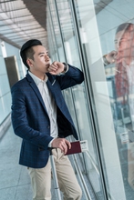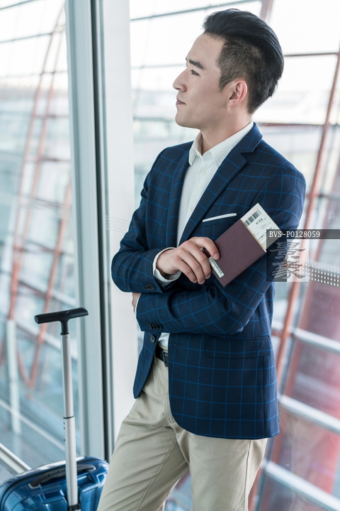 图片标题:     年轻商务男士在机场拿着护照和机票