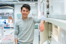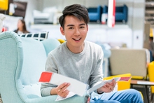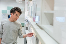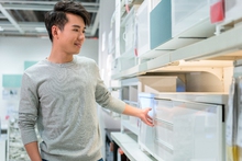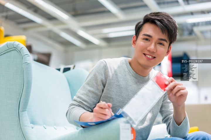 图片标题: 年轻男子挑选沙发
