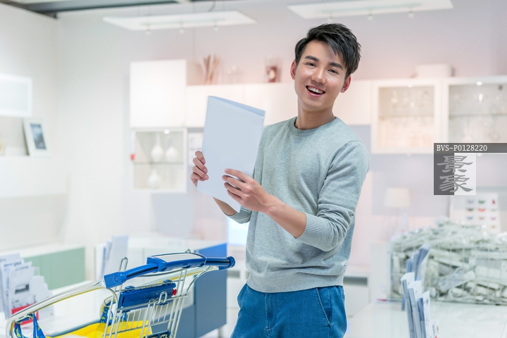 图片标题: 年轻男子挑选家居