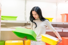 图片标题: 年轻女子选购生活用品