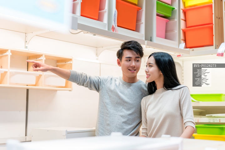 图片标题: 年轻情侣选购生活用品