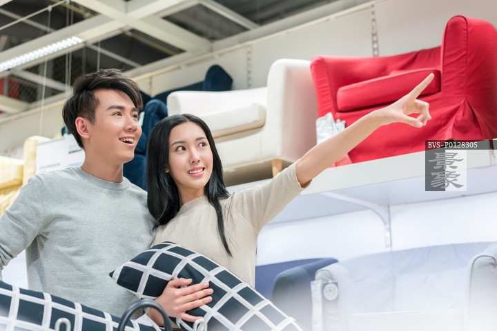 图片标题: 年轻情侣选购家居用品