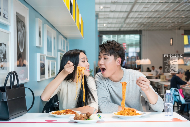 图片标题:     甜蜜的年轻情侣在餐厅用餐