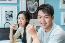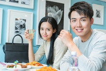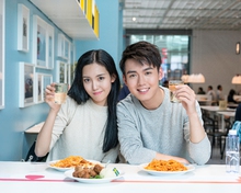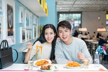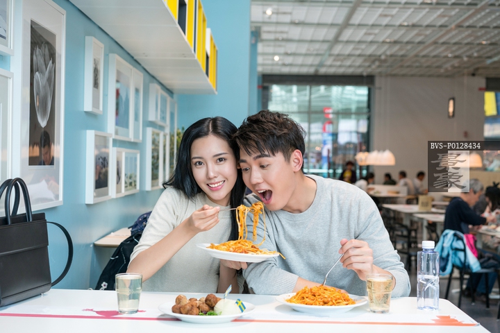 图片标题: 甜蜜的年轻情侣在餐厅用餐