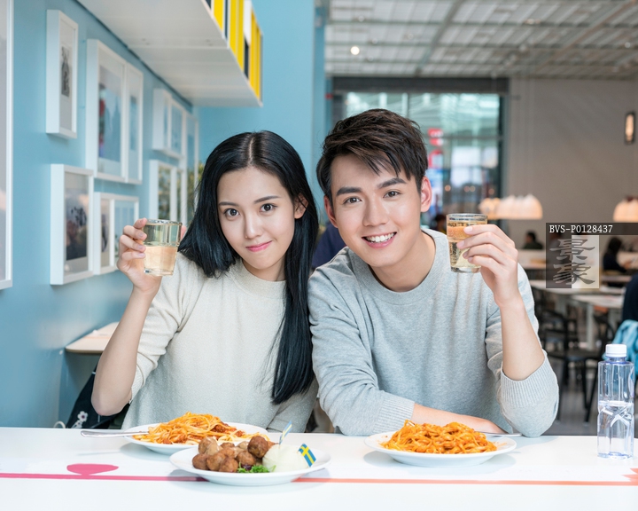 图片标题:     甜蜜的年轻情侣在餐厅用餐