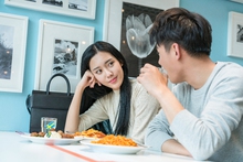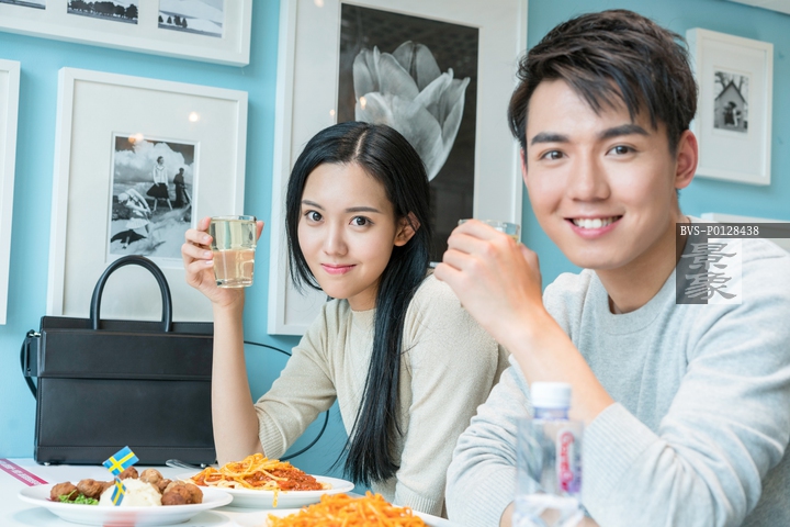 图片标题:     甜蜜的年轻情侣在餐厅用餐