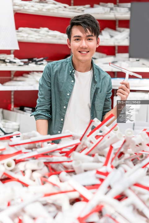 图片标题: 年轻男子选购生活用品