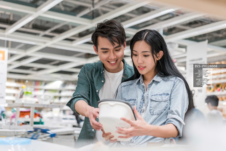 图片标题: 年轻情侣选购日用品