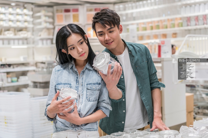 图片标题: 年轻情侣选购日用品
