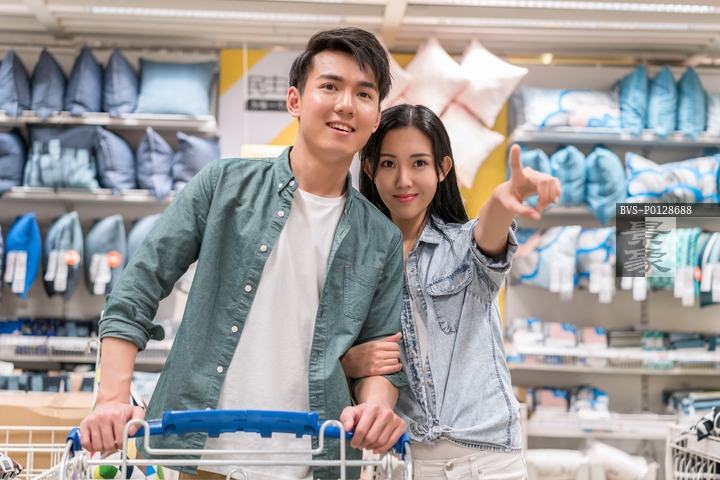 图片标题: 年轻情侣选购家居用品