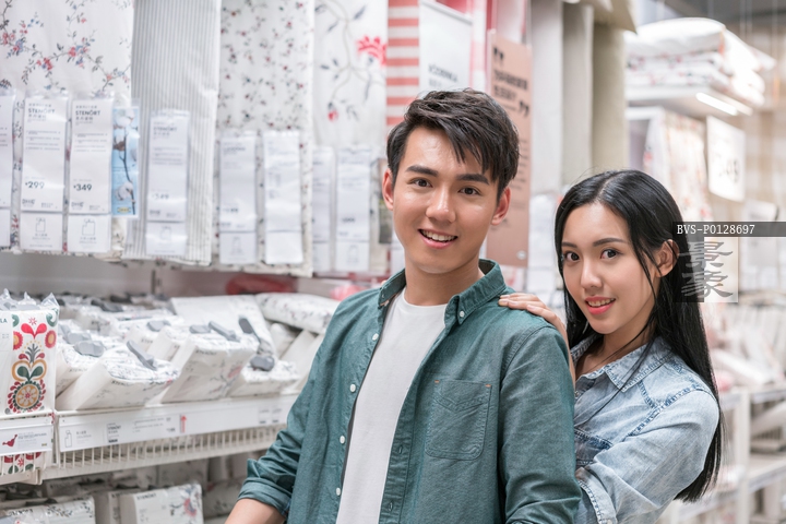 图片标题: 年轻情侣选购家居用品