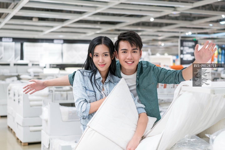 图片标题: 年轻情侣选购家居用品