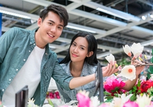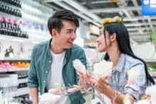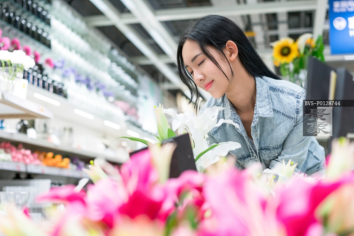 图片标题: 年轻女子选购装饰花