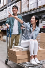 图片标题: 年轻情侣选购家具建材