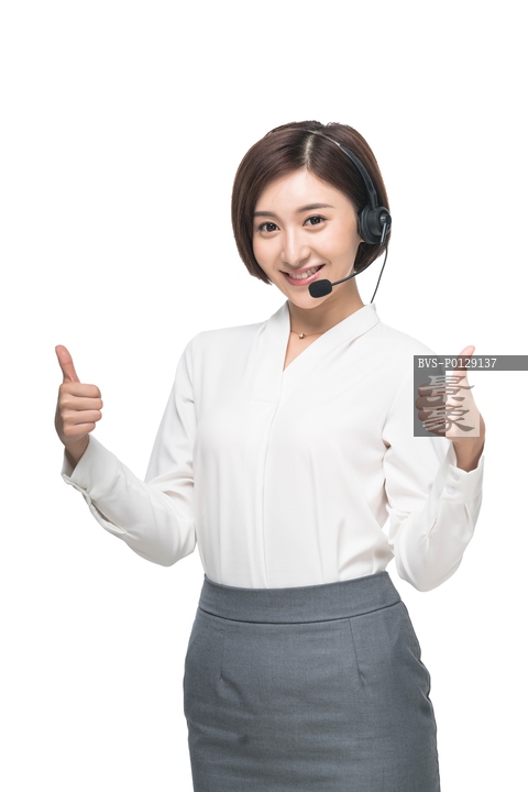 图片标题: 女客服人员头戴耳机
