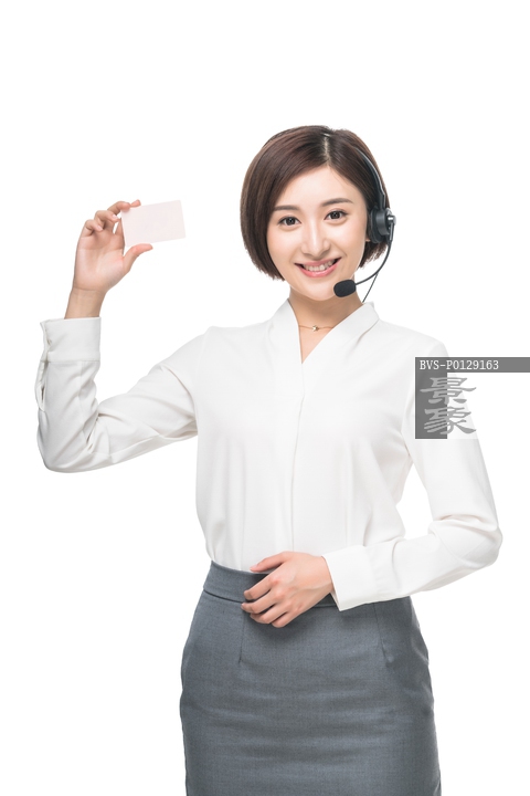 图片标题: 女客服人员头戴耳机