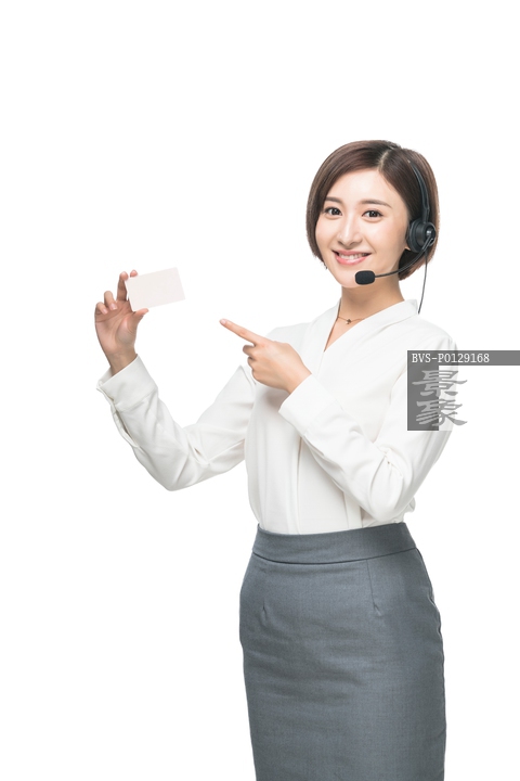 图片标题: 女客服人员头戴耳机