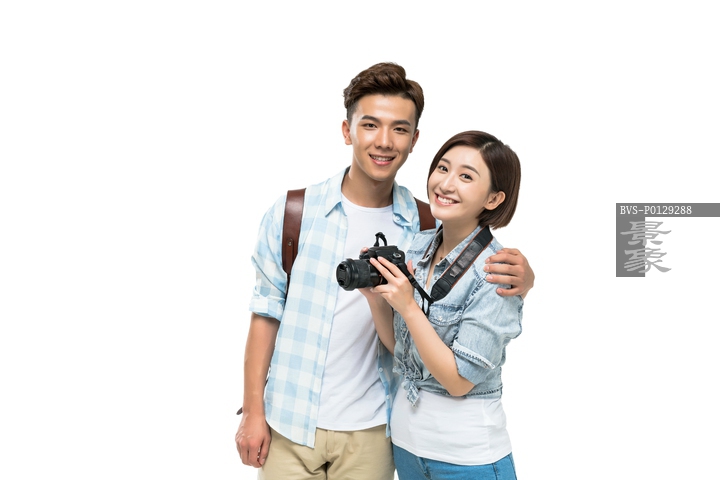 图片标题: 快乐情侣带着相机旅行