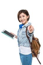 图片标题:     快乐的年轻女子徒步旅行
