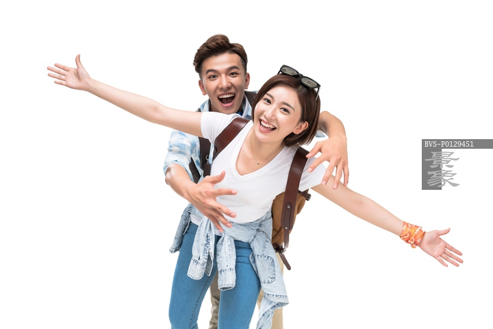图片标题: 快乐的年轻情侣背包旅行
