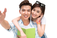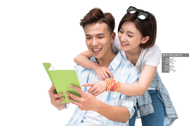 图片标题: 快乐的年轻情侣一起看书
