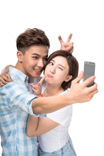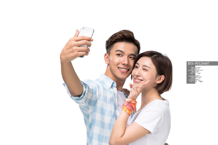 图片标题: 快乐的年轻情侣自拍