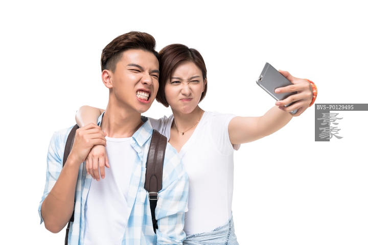 图片标题: 快乐的年轻情侣自拍