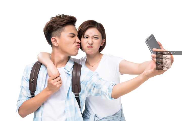 图片标题: 快乐的年轻情侣自拍