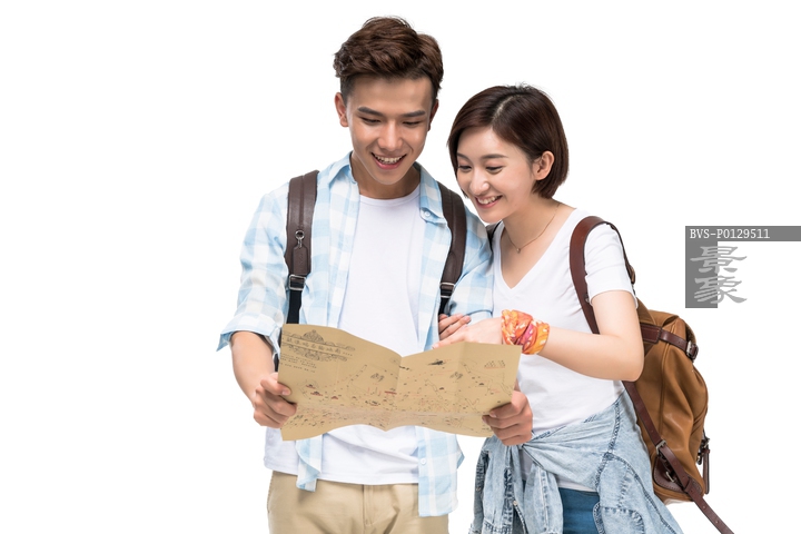 图片标题: 快乐的年轻情侣拿着地图