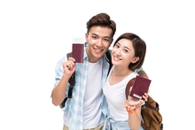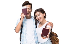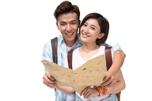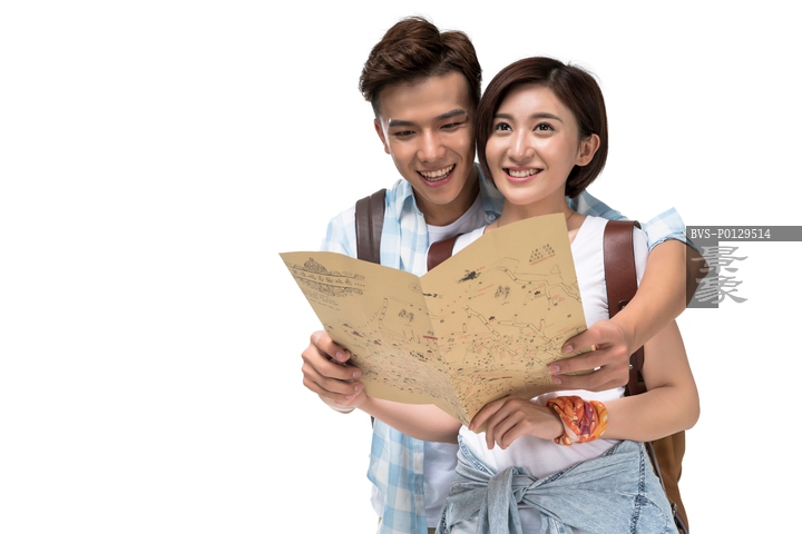 图片标题: 快乐的年轻情侣拿着地图