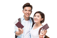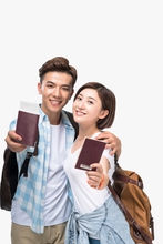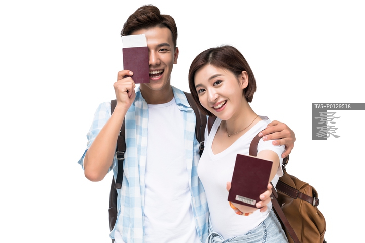 图片标题: 快乐的年轻情侣拿着护照去旅行