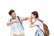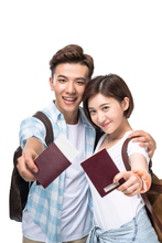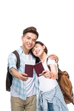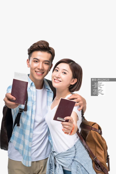 图片标题: 快乐的年轻情侣拿着护照去旅行