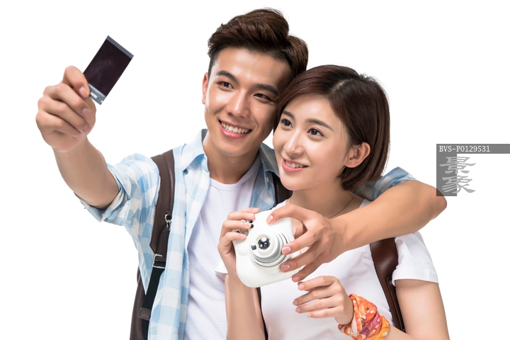 图片标题: 年轻情侣查看照片