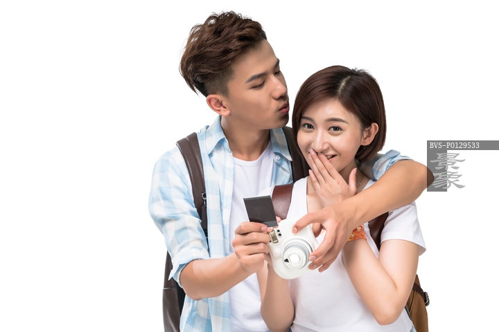 图片标题: 年轻情侣查看照片