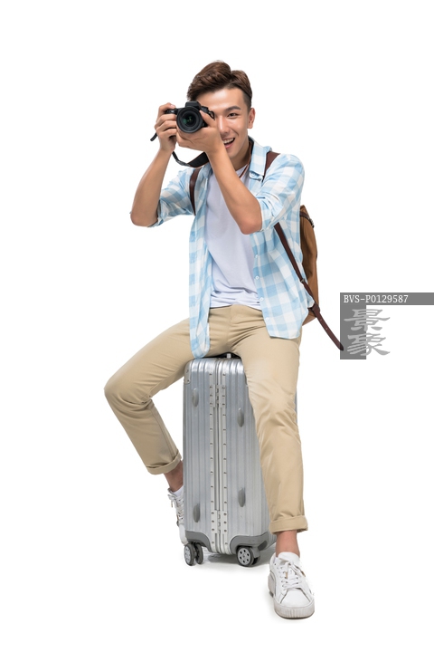 图片标题: 年轻男子带着相机去旅行
