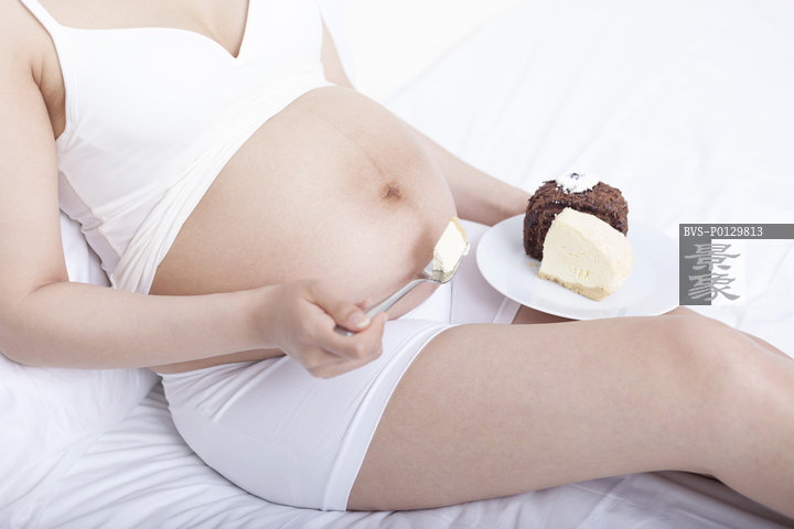 图片标题:     孕妇坐在床上吃蛋糕