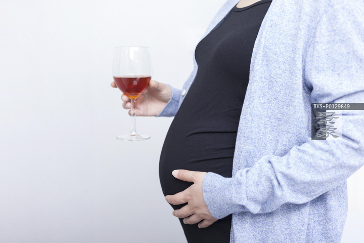 图片标题: 孕妇不健康的饮食习惯,孕妇拿着酒
