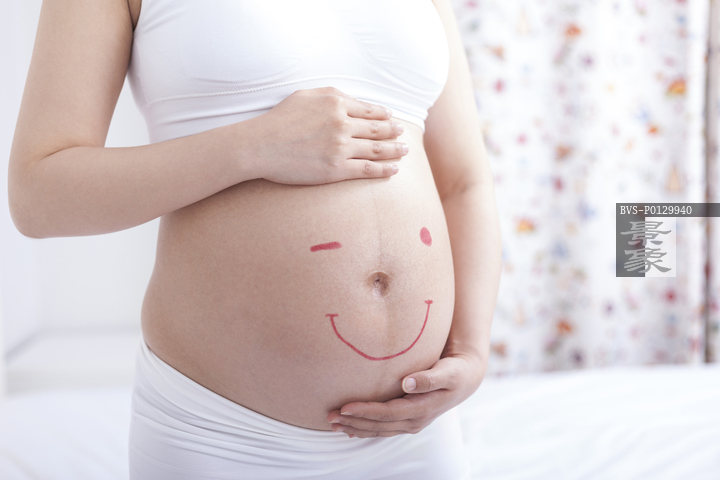 图片标题:     孕妇在肚子上画笑脸