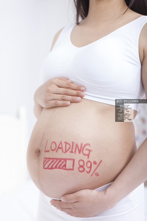 图片标题: 孕妇和等待加载标志