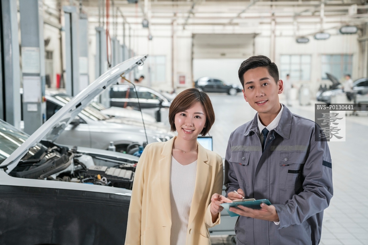 图片标题:     维修车间的汽修人员与客户