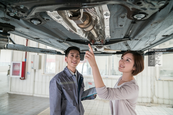 图片标题: 维修车间的汽修人员与客户