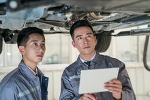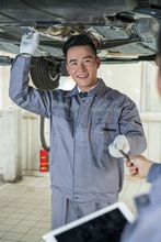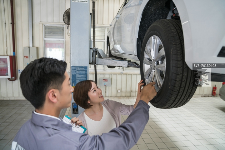 图片标题: 维修车间的汽修人员与客户