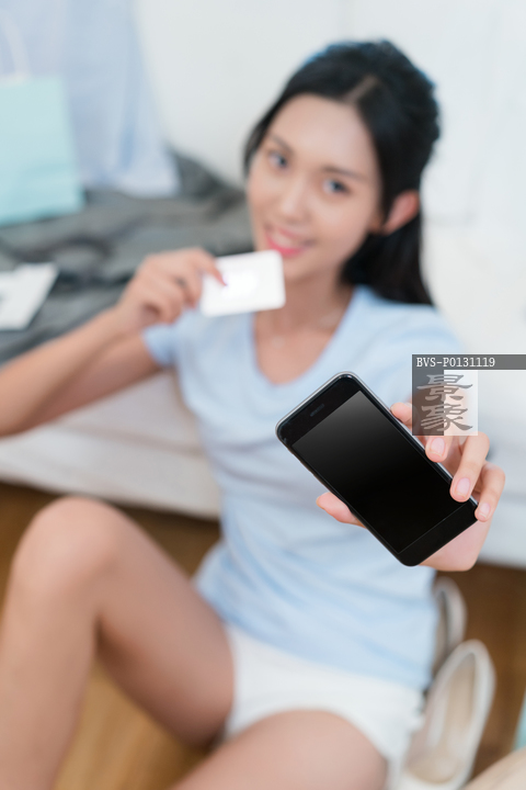 图片标题: 一个年轻女孩网上购物