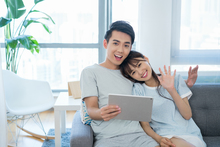 图片标题: 一对年轻情侣的休闲生活