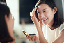 图片标题: 年轻美女扑粉化妆