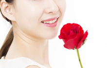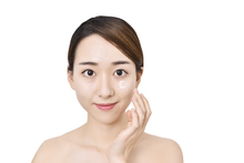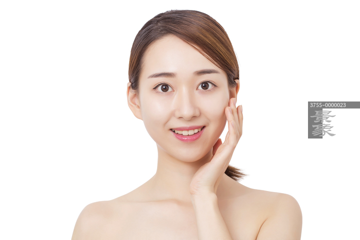 图片标题: 美丽的女人,光滑的皮肤抚摸她的脸