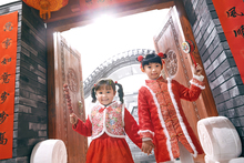图片标题: 欢乐的男孩女孩庆祝新春