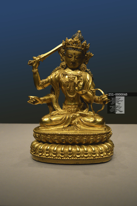 图片标题: 铜鎏金四臂文珠菩萨像(明)