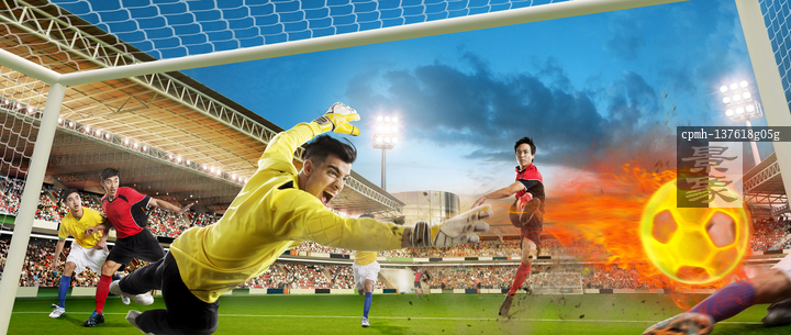 图片标题: 足球运动员在踢足球
