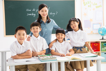 图片标题: 老师在指导小学女生学习